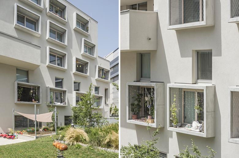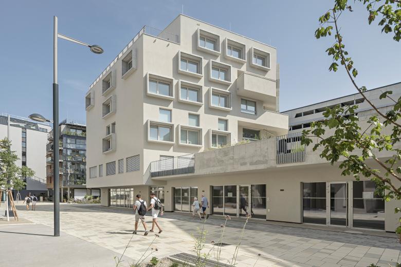Der Gebäudekomplex besteht aus dem Clusterhaus (feld72) und dem Wohngruppenhaus (transparadiso), die durch eine gewerblich genutzte Stadtsockelzone verbunden sind. Neben Wohnungen, Büros, Gewerbe- und Werkstattflächen bietet das Clusterhaus 3 Wohncluster, die mehrere autarke, mit Bad und Kleinküche ausgestattete Studios, Gemeinschaftsküchen und Gemeinschaftsräume zu zeitgemäßen Wohngemeinschaften zusammenfassen und Lebensraum für Wohnformen außerhalb des klassischen Familiensystems bieten. Die Stadtsockelzone mit Stadtwerkstatt richten sich an UnternehmerInnen, die nach gemeinsamer Nutzung von Infrastrukturen in einem kommunikativen und innovativen Arbeitsumfeld suchen. Der darüberliegende Stadtbalkon verbindet die beiden Gebäude und vernetzt alle Nutzungen und Funktionen in einem halböffentlichen Freiraum.