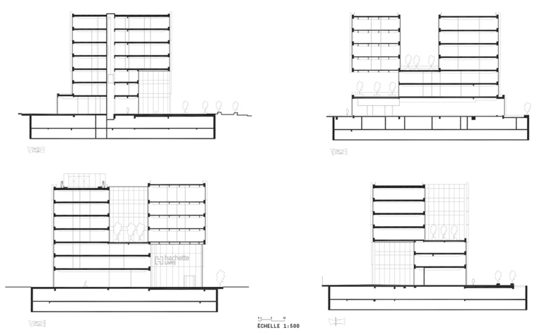 From these starting points, we then developed a number of design options, all of which sought to take into account not only the urban dimension but also the way in which people would work in and use the building. The offices all benefit from direct daylight and outside views, and form what could be regarded as the building’s "inhabited envelope." All the façades are fitted with a second "skin' in the form of a giant slatted blind, which filters the natural light. In this way, the façades are perceived as independent units, eschewing the mundane appearance of a traditional office building and creating a strong urban architectural image.