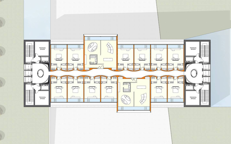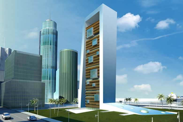 IT Tower is a multifunctional building, with prevailing hotel surface, whose design is entirely made in Italy. The tower interacts with atmospheric conditions using renewable energy and interior natural ventilation. Energy consumption is considerably reduced due to three factors: the irregular ribbon volume that envelops and protects the tower from sun lighting, the double skin shell and the internal spatial distribution. IT Tower design shows externally its internal functional distribution and reveals itself as a stratification of overlapping elements: - the most articulated element is the dynamic perimeter ribbon: it has a structural function and includes vertical connections and technical spaces. At ground level, the ribbon creates a volume, then it grows up to the top of the tower where it becomes the roof, than it goes down on the opposite side, ending as platform; - the suspended volumes have their horizontal floors hanging on two long deep beams. All the shelves have double skin protection with variable section and axle spacing brise-soleils; - the sticking-out glass boxes, simple parallelepipeds fitted between volumes, are dedicated to special uses. In every hotel room, the entrance's axis divides the bathroom in two glass boxes, one more private, hidden by the wardrobe volume accessible from the room, the other one with sink and shower. The bed occupies the middle of the space and faces the big facade window where there is a bathtub that allows also the heat dissipation due to high external sun-lighting. The suites, inside sticking-out glass boxes, have minimal furniture and the internal space is divided only by bathroom volume or by translucent sheets. Engineering design aims to integrate lighting sources and architectural volumes.