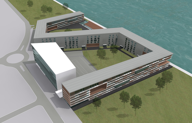 The project is located on Kipsala island, on the left side of river Daugava, in front of the old centre of Riga, with a total building area of 36.000 sqm. The project is composed by two units: Kipsala Residence, a residential complex with about 200 apartments different in dimensions, two private internal courts and related facilities, and Kipsala Directional Centre, a commercial and directional building with a roof top restaurant. The main design purpose is to take advantage of the plot position, allowing all the residential units to enjoy the privileged view of the river and the old city centre. The volume develops all along the plot with a sinuous movement, fronting the river with a transparent skin, filtered by wooden vertical brise-soleils, and putting forward the street an opaque façade. The roof of the entire building is not plate but moves with different grades, giving to the complex a dynamic and lightened aspect, emphasized by deep cuts which pass from part to part the architectural volume, lending a visual permeability. The design aims to guarantee the best privacy level permitted by the plot position, so the directional centre is completely separated from the residential area and protects it and the main court from street noises and view. The facade fronting the water is entirely transparent and variable, sliding glass windows let the space flexible. This idea of architecture overcomes the traditional distinction between interior and exterior: “osmotic” architecture looks for adaptable and permeable spaces, places where Is generated a continuous flux of relation between architectonic manufactured and the environment. Kipsala Complex meets the eco-sustainability principles: thanks to the use of building and finishing materials recycled and recyclable, requiring low energy consumption for their production, low-cost maintenance and a long life cycle; thanks to the use of renewable energy sources and the energy saving orientation.