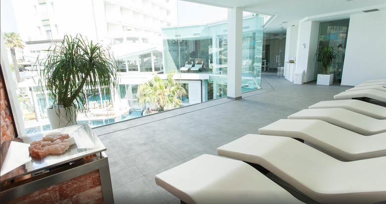 A specific attention has been dedicated to Spa, thermal pools and wellness area: all the interiors have been designed to generate a complete emotional well-being for both body and mind. Like all the other ground floor areas, lighting systems have been integrated into the design, this time linked with aromatherapy and colortherapy and with the benefits of thermal waters.