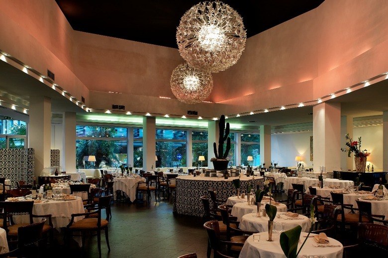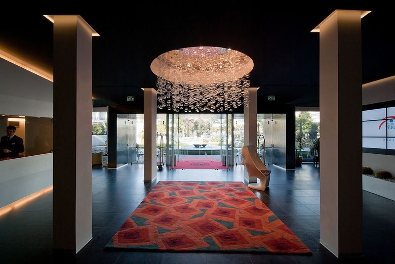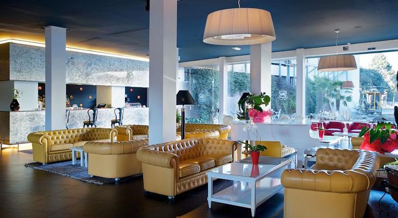 At the ground floor, the interior design has affected all the common areas: entrance with reception desk, lobby, bar and restaurant have been completely renewed. The design integrated lighting systems customized in every single part. The upper part of the pillars and walls have been enlightened at the cross point with the covering black ceiling.
