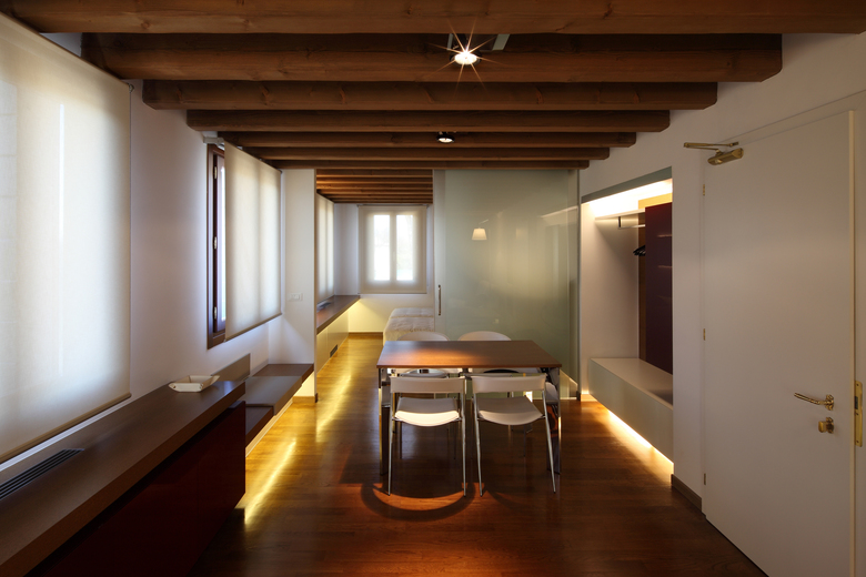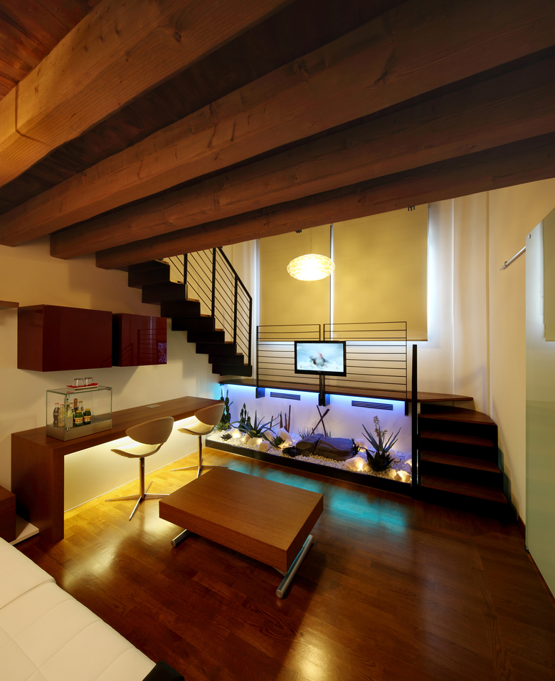 The interior design intends to enhance the traditional distribution of spaces, without sacrificing the comfort and needs of contemporary living. In particular, considering that it is an exclusive accommodation, special attention has been given to the study of forms and materials, to create quality and exclusive spaces.