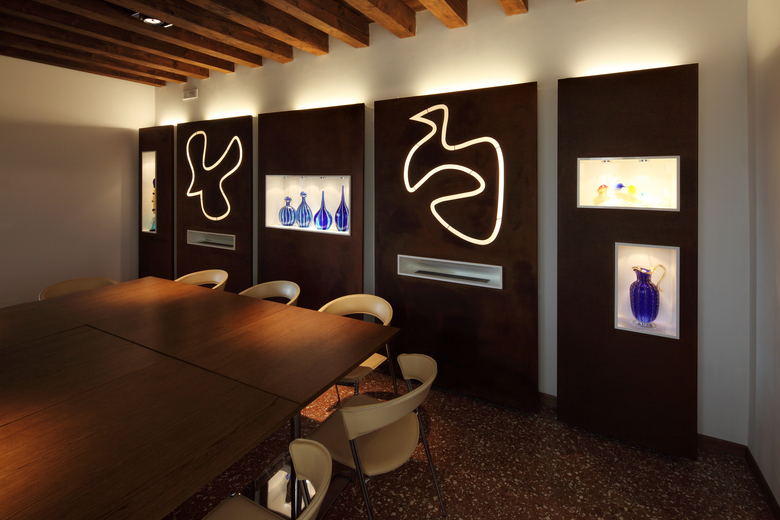 New modern glass cases with minimalistic shapes incorporate the traditional baroque transparencies of the hand-made Venetian glass.