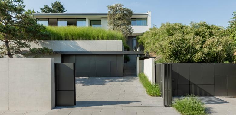 Wenig Ein-, aber viele Aussichten: Ein unbebautes Grundstück am Ende der Straße war die Inspiration für die gestaffelte Hangvilla mit einzigartigem Panoramablick.