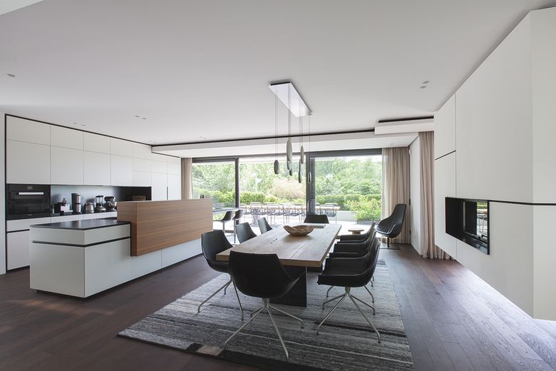 Die Einbaumöbel sind nicht weniger hochwertig und mit klaren Linien harmonisch in die Architektur integriert.