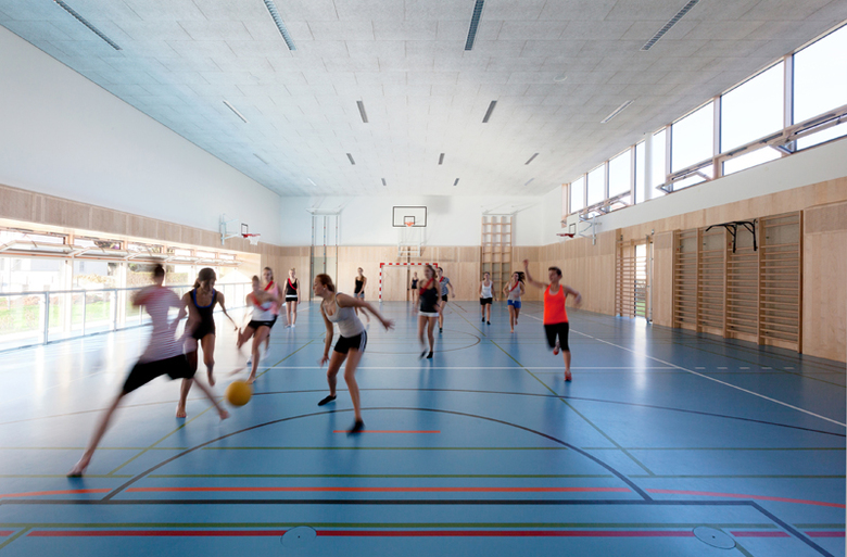 'Der neue Sportbereich wurde in Kooperation und Kofinanzierung (!) mit der Landesberufsschule am Nachbargrundstück errichtet und erweitert das räumliche Angebot für den Sport-Unterricht als auch für sportliche Pausengestaltung - für beide Schulen, es entsteht eine Art Schul-Campus.
