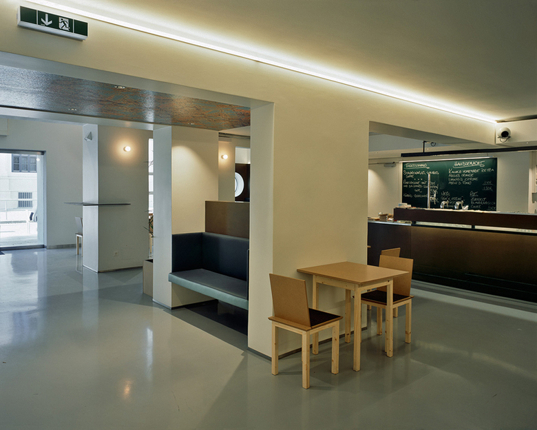 Zugleich geht es um ein Gefühl von Höhe, und dann von Weite, denn der bislang niedrige beziehungsweise vollgestellte Foyer-Raum wird ausgeräumt, wird zur Leere – offen für wechselnde Bilder und Inhalte. Das Rein- und Durchgehen meint allerdings nicht schnelles Durchlaufen, sondern eine Zone des Wartens, wobei sich an unerwarteten Stellen Nischen auftun und im Nutzungsoffenen alles Mögliche passieren können soll. Nicht zuletzt deshalb ist, wie schon der Architekt / Film- / Kultur-Theoretiker Siegfried Kracauer wusste, das Warten der Film-Erfahrung grundsätzlich nah.