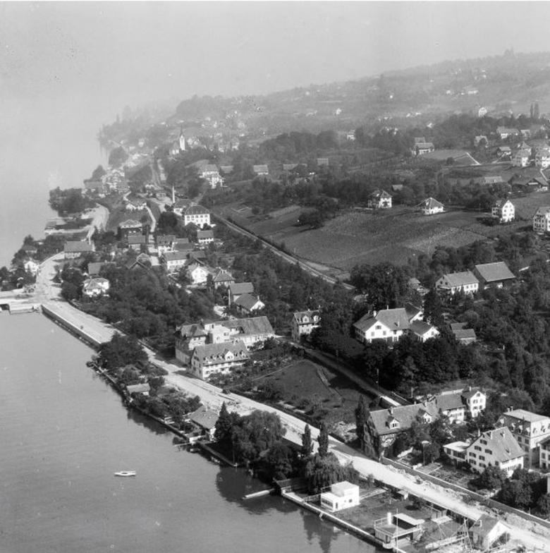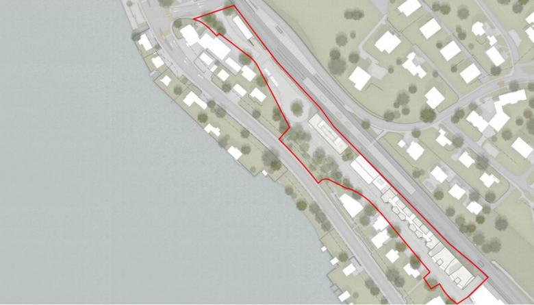 The General-Wille street, which leads from Meilen along the hill, over vineyards, under the railroad embankment, through old village centers, to the new Coop and railroad station – with niches and narrows, old walls and cobblestones, with a far-reaching view over the lake and an insight into the history of the place – is thus thought further. Also on the station area, its local character is restored, niches, greenery, and residential addresses are made possible up to the lake terrace, where it becomes a public place.