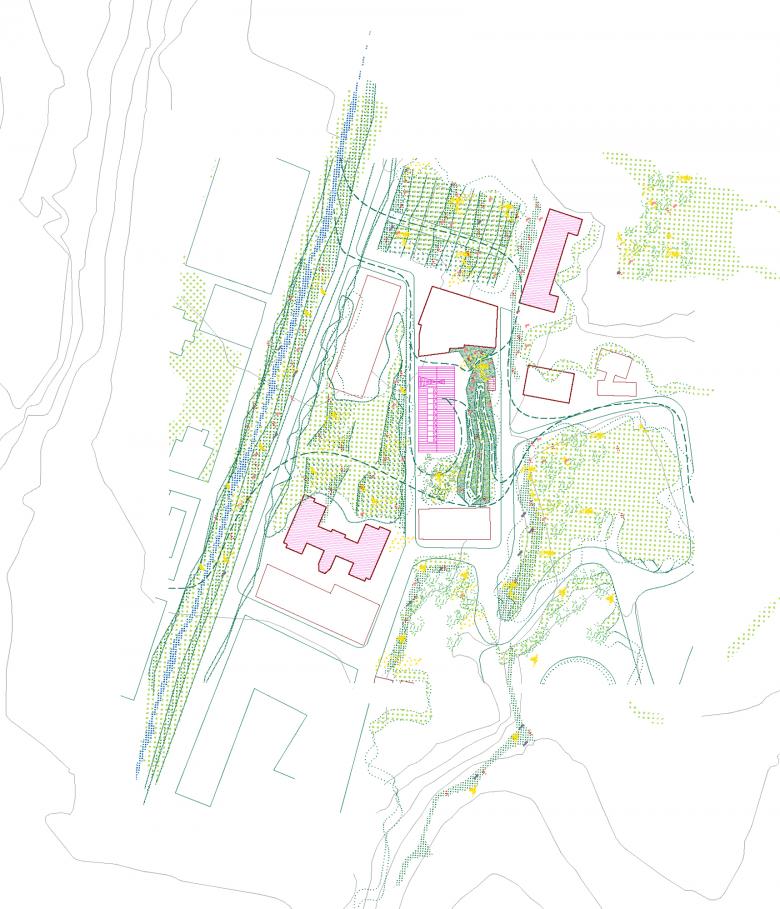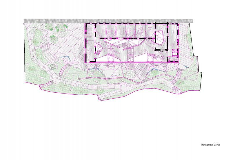 La nueva biblioteca de Arenys de Mar se ubica en el antiguo convento de Les Clarisses, un edificio de estilo modernista de finales del siglo XIX catalogado como patrimonio histórico. Situada en el último vestigio verde del pasado agrícola del pueblo, la biblioteca tiene el potencial de convertirse en un nexo entre el río y las montañas cercanas. Respetando la planta en forma de U del edificio existente, el proyecto propone una ampliación del volumen original mediante una gran cubierta a dos aguas con paneles fotovoltaicos, que alberga una serie de plataformas fluidas abiertas al paisaje, permitiendo a los usuarios disfrutar de la luz y la naturaleza.