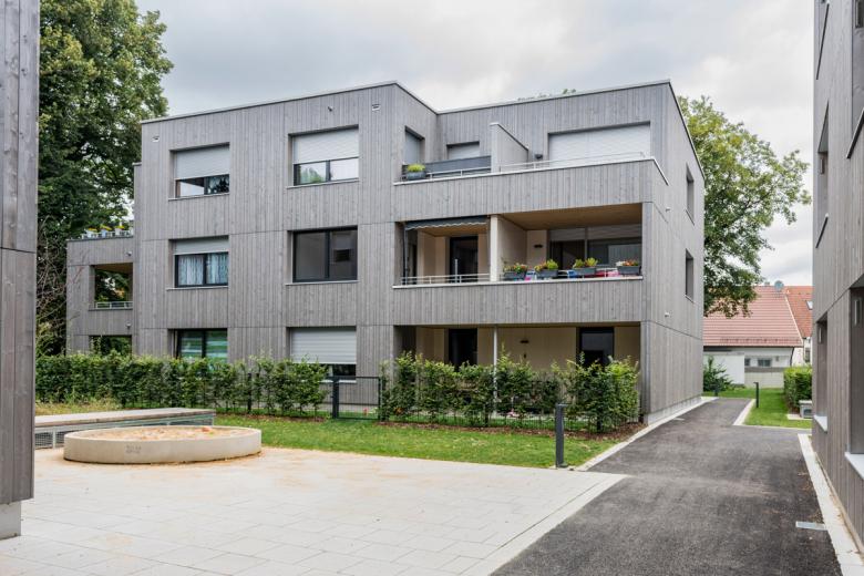 Im Westen des historischen Zentrums von Augsburg erstreckt sich der Stadtteil Pfersee. Als ehemaliger Industrievorort der schwäbischen Lech-Metropole, durchlief sein urbanes Gefüge einen Prozess des tiefgreifenden Wandels. Seit den 1960er Jahren entwickelt sich hier ein durchgrüntes, kleinteilig organisiertes Viertel, das durch seine überschaubaren Maßstäbe und die gute Anbindung an die Innenstadt eine hohe Wohnqualität aufweist. In Folge eines Architekturwettbewerbs entstand auf der Parzelle eines rückgebauten Schulgebäudes an der Spicherer Straße eine Anlage mit sieben hochwertigen Mehrfamilienhäusern. Der Bauplatz zeichnet sich durch seinen wertvollen Baumbestand aus, der dem Areal eine gewachsene Identität verleiht.