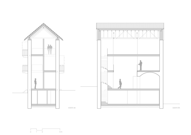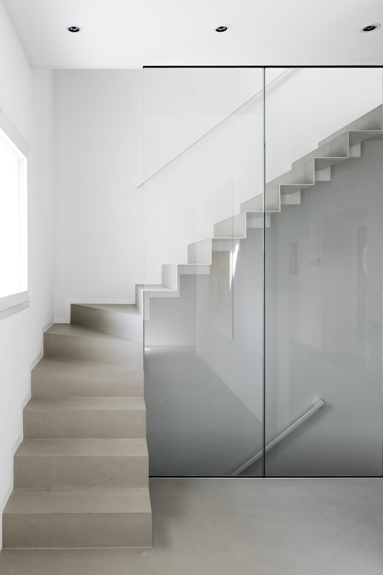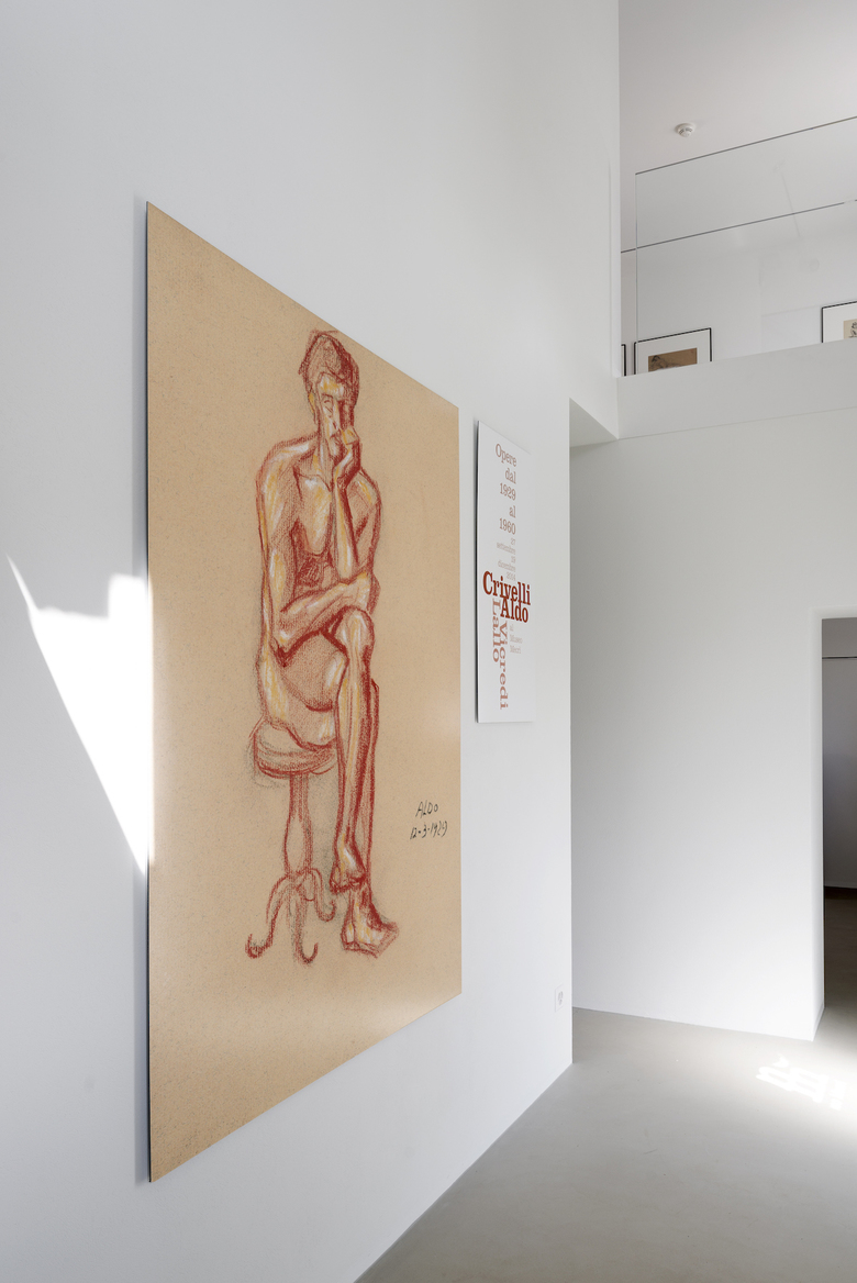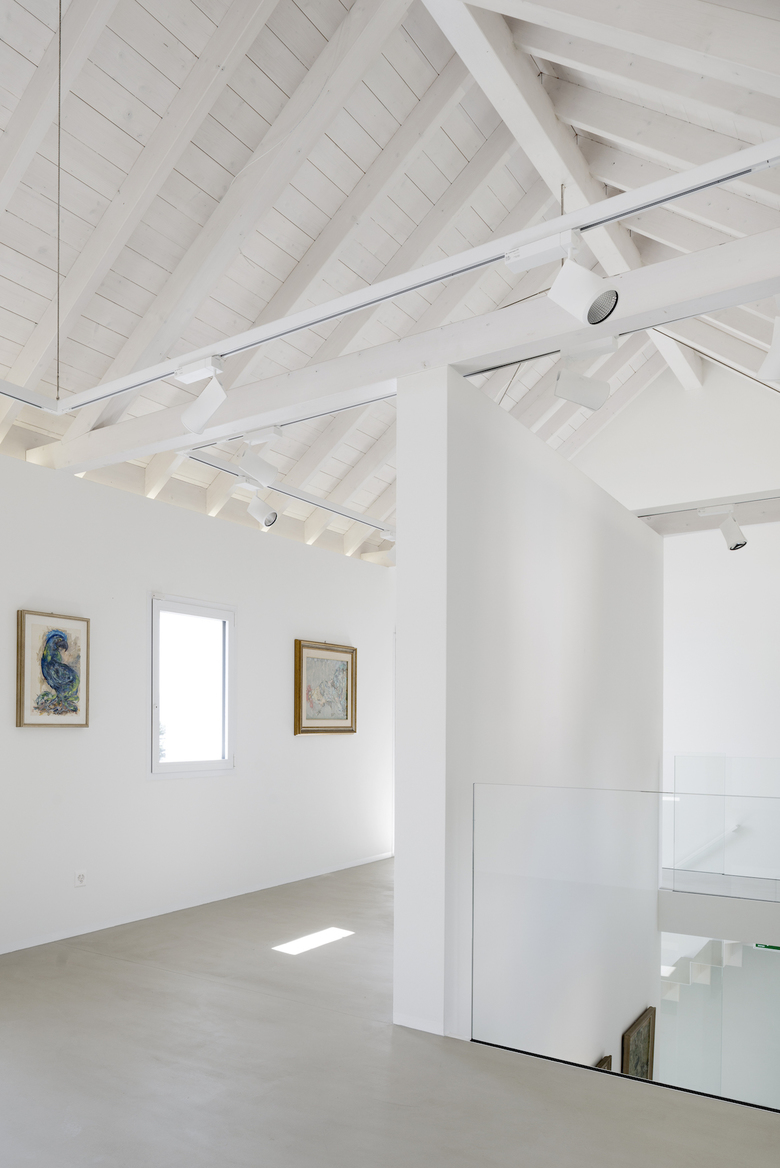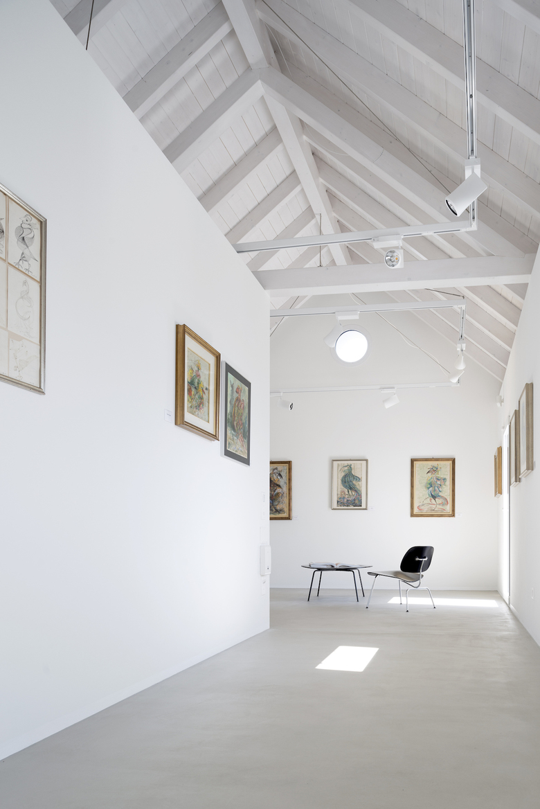 The interior of the building was totally emptied and completely rebuilt apart from the vaulted room on the ground floor, which is a reminder of the building's original function: a home. The exposition spaces are a sequence of continuous spaces, two in double height, which create new spatial experiences and relationships between each floor. A lightweight metal stair connects the levels and one finally reaches the final floor enclosed by a white roof wood structure. The interior was kept white to create a canvas for the colours of the artwork presented and also to let the scenery outside become another focus of the visit. The expositions will be temporary and host a variety of sculptures and paintings by various artists including those by Aldo Crivelli.
