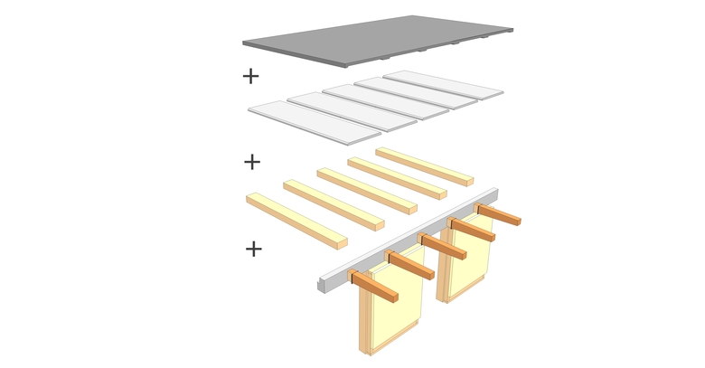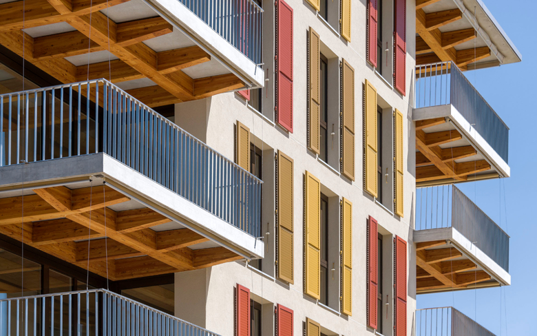Ce projet de trois bâtiments de logement est une structure mixte bois-béton et répond aux exigences du label Minergie A-ECO. L’assemblage innovant du bois et du béton entre les colonnes et les sommiers préfabriqués en béton armé exploitent au mieux les propriétés intrinsèques des deux matériaux et optimise la capacité structurelle de l’ensemble.