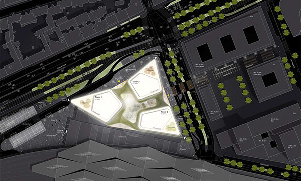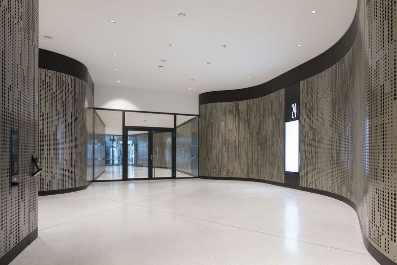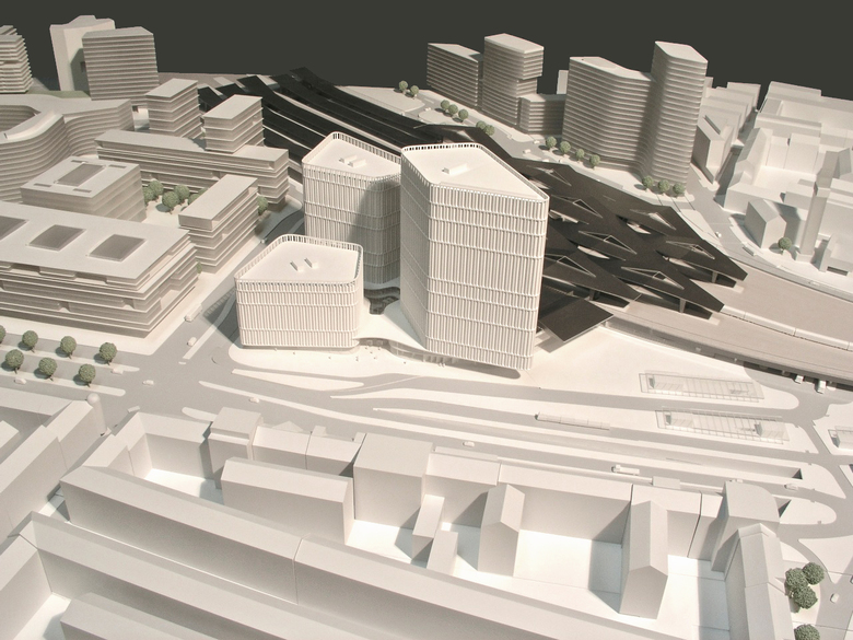 Fernwirksam und zugleich angemessen städtebaulich gegliedert, bildet das neue Business Center A.01 eine Landmark am Wiener Hauptbahnhof. Selbstbewusst besetzen die drei unterschiedlich hohen Türme die Spitzen des nahezu dreieckigen Grundstücks. Geformt wie glatte Felsen, unterstützen die drei Hochpunkte den Bewegungsfluss der Menschen durch das innerstädtische Quartier. Es entsteht ein spannungsvoller Raum, der spektakuläre Aus- und Durchblicke erzeugt und dem urbanen Anspruch des Quartiers gerecht wird. Großzügige Lobbys empfangen den Besucher und führen zu den vertikalen Erschließungen. Durch Verschränkung der Ebenen entstehen logische Verbindungen und eine räumliche Vielfalt. Der Zwischenraum wird zum Erlebnisraum. Die zentrale Plaza im Erdgeschoss übernimmt die zentrale Gelenkfunktion und führt die Struktur der öffentlichen Räume vom Erste Campus und dem Quartier Belvedere bis zum Hauptbahnhof logisch weiter. Die eloxierte Oberfläche der Aluminiumfassaden unterscheidet sich in Farbnuancen, sodass bei gleicher gestalterischer Grundidee drei unterschiedliche Baukörper wahrnehmbar sind. Das seriell multiplizierbare Kastenfenstersystem mit Öffnungsflügel, Prallscheibe und außen liegendem Sonnenschutz gewährleistet einen hohen Nutzerkomfort und erfüllt höchste Anforderungen an die Nachhaltigkeit des Gebäudes. Deren Struktur ist so ausgelegt, dass auch eine Umnutzung zu einem späteren Zeitpunkt oder eine Erweiterung der Konferenzbereiche oder zusätzlichen Retailflächen denkbar ist.