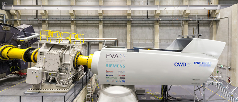Der Neubau des Prüfstandgebäudes „Center for Wind Power Drives“ zur Erforschung von Windenergieanlagen im Multi-Mega-Watt-Bereich legt sich als klarer Baukörper in das Baufeld der Hochschulerweiterung auf dem Campus Melaten. Das CWD bündelt die Forschungs- und Entwicklungsgebiete der Antriebstechnik von Windenergieanlagen (WEA) an der RWTH Aachen. Über 50 Experten aus sieben Instituten der rheinischen Hochschule können künftig auf den Prüfstand zugreifen.