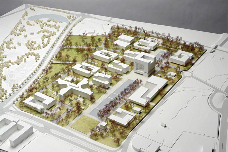 Alle Gebäude sind durch ein Netz „schneller Wege“, die die Außenanlagen durchziehen, miteinander verbindet. Auf einem grünen, baumbestandenen „Teppich“ ergeben sich zwischen den Baukörpern durchlässige und großzügige Freiräume. Es entstehen aber auch Blickbeziehungen und Binnenräume, die eine gewünschte urbane Dichte ergeben. Der an den Campus angrenzende Krupp-Park verlängert den Landschaftsraum des Quartiers über den Berthold-Beitz-Boulevard hinaus.