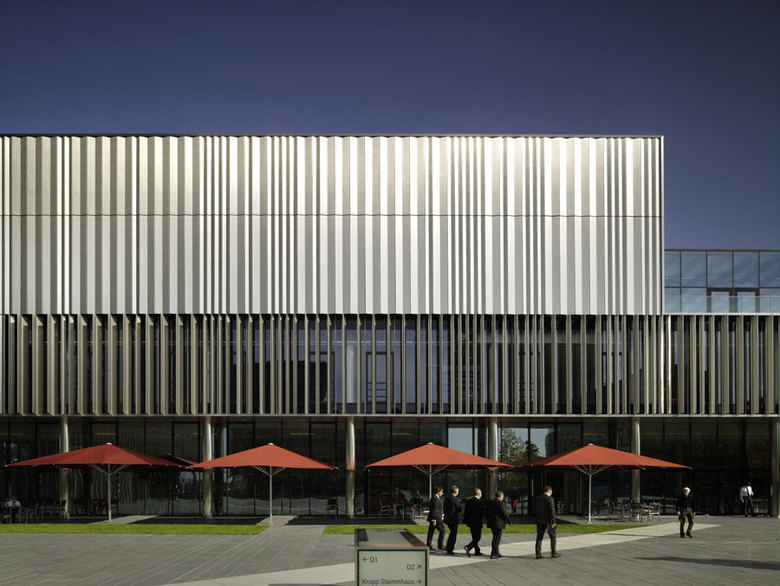 Die Architektur und die bevorzugten Materialien Stahl und Glas setzen die Innovationen des Technologiekonzerns Thyssenkrupp zeitgemäß in Szene und bieten moderne Arbeitswelten an einem traditionsreichen und urbanen Standort. Mit der Gliederung und der offenen Anmutung des Campus werden die Kommunikation und der Wissensaustausch der Mitarbeiter und Besucher gefördert.