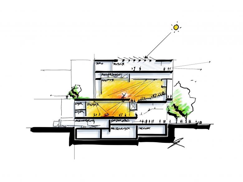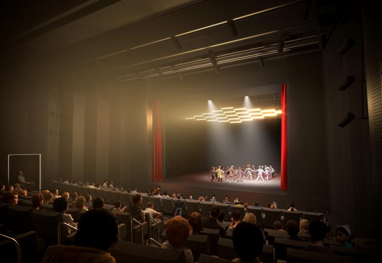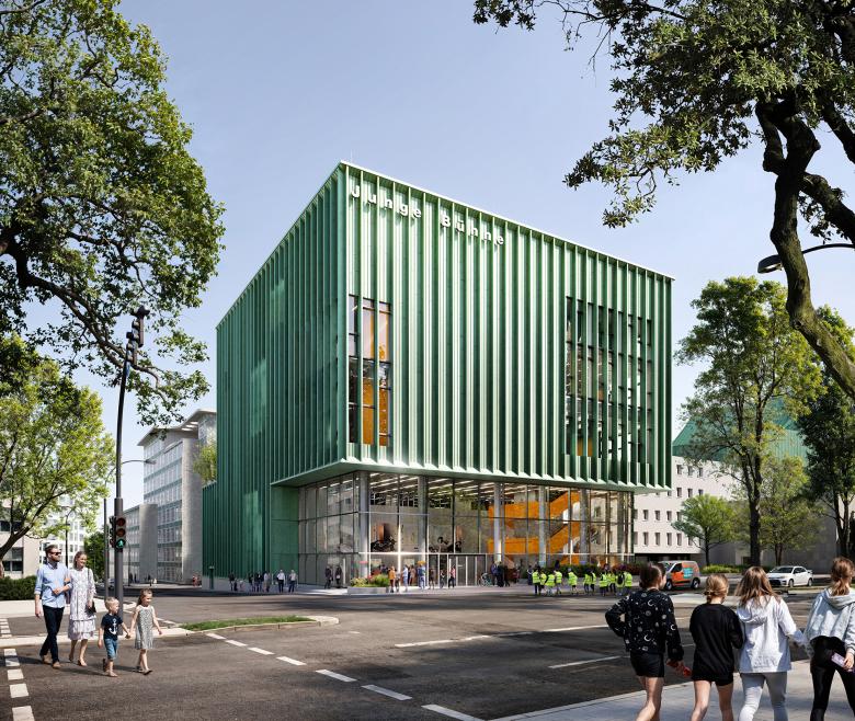 Der Neubau der „Jungen Bühne“ soll direkt am Schauspielhaus von Dortmund entstehen. Der Entwurf von JSWD respektiert historische Sichtachsen und gibt dem Stadtraum eine neue Prägnanz. Das Konzept entwickelt sich schlüssig aus dem Bestand. Trotz eigenständiger Architekturformen bildet es einen integralen Bestandteil des gesamten Theaterkomplexes.