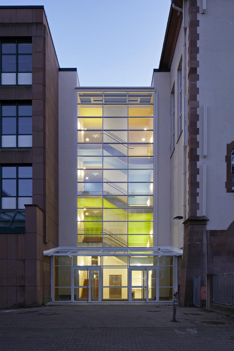 Ursprünglich nur als Brandschutzsanierung geplant, entwickelten wir ausgehend vom Bestandsbau der 1803 gegründeten Musterschule im Frankfurter Nordend ein gestalterisches Gesamtkonzept für den Gebäudeanbau aus den 80er Jahren. Dank einer intensiven Auseinandersetzung mit dem Ressourcen Vorort ging das Ergebnis mit Einsatz von nur wenigen und minimal invasiven Mitteln darüber hinaus, was ursprünglich geplant war.