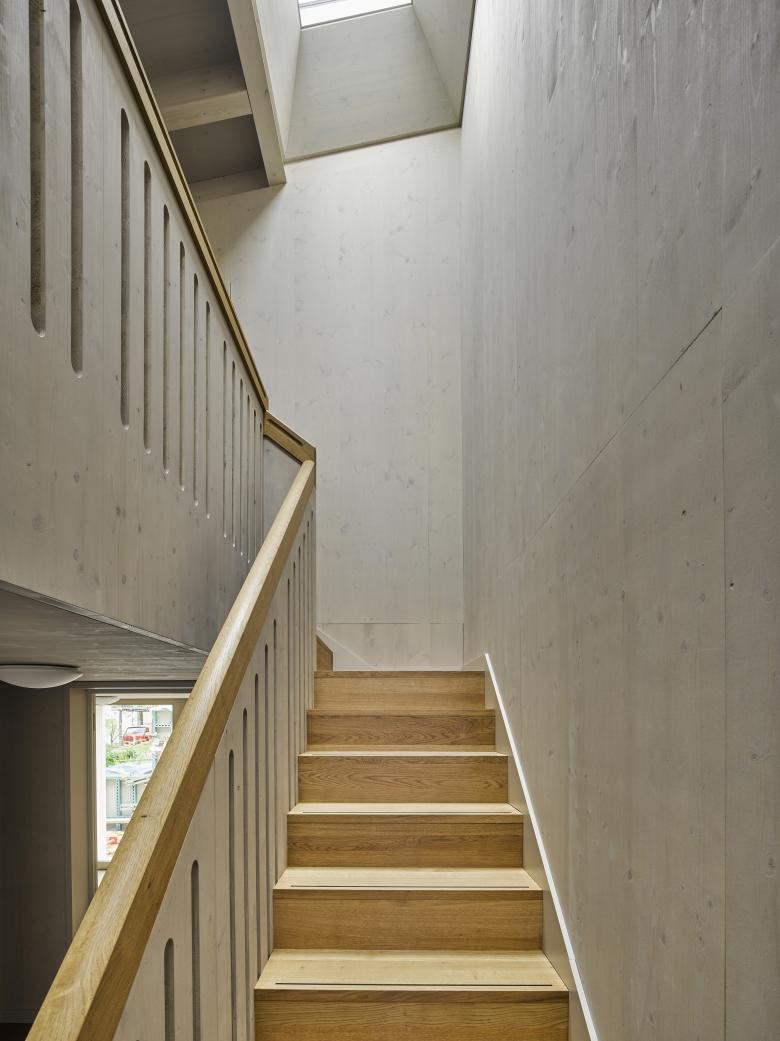 Die bestehenden Galerien eignen sich aufgrund der Anforderungen an Fläche, Höhe und Akustik nicht als Gruppenräume. Sie werden zugunsten grosszügiger und heller Haupträume rückgebaut. Verbunden mit der neuen Befensterung und den zusätzlichen Oblichtern entsteht eine helle und freundliche Raumatmosphäre. Der Bezug zu den gedeckten Aussenräumen im Süden und zu den Eingangswegen im Norden bleibt erhalten.