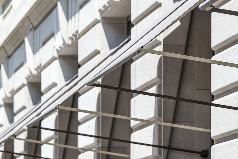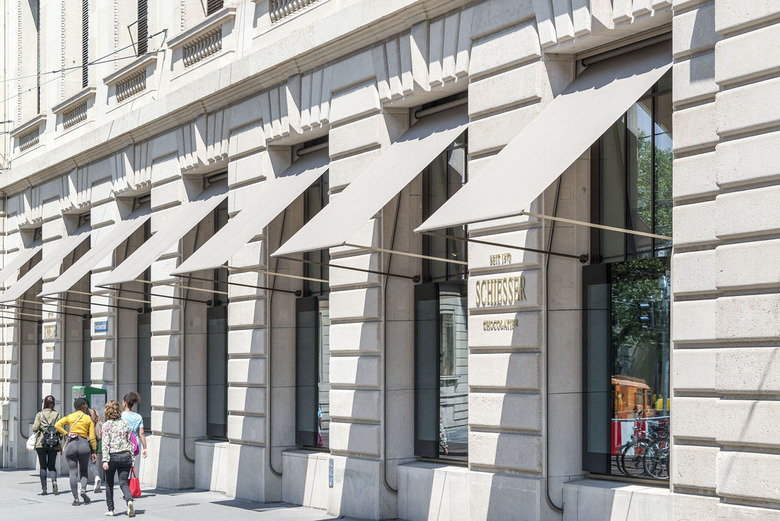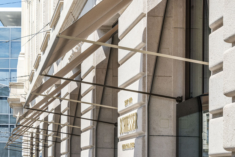 Komplettsanierung und Umnutzung des 1900 im neoklassizistischen Stil erstellten Hauptsitzes des ehemaligen Schweizerischen Bankvereins in Basel. Filigrane Fallarmstoren für denkmalgeschütztes Gebäude zur Beschattung der Schaufenster der Schalterhalle und der Confiserie.