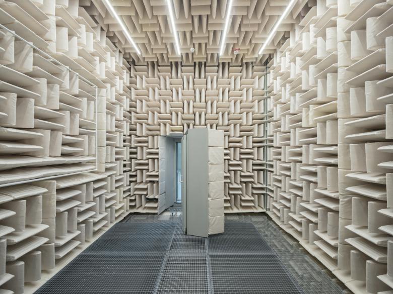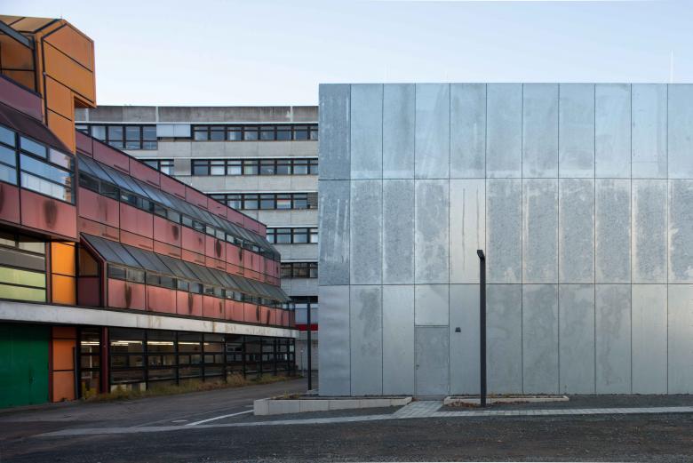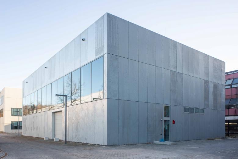 In dem neuesten Gebäude der TU Darmstadt auf dem Campus Lichtwiese wird die Schallabstrahlung von Maschinen erforscht. In der Ästhetik des Gebäudes spielt das Thema Licht eine große Rolle – sei es durch die Reflexionen der Sonne in der puristisch gestalteten Metallfassade oder das Tageslicht, das durch die durchgängige Fensterfassade in die Halle des Gebäudes flutet. „Städtebaulich bildet das Gebäude gemeinsam mit dem ebenfalls von uns gebauten Lehrzentrum für Maschinenbau eine Einheit“, erklärt Entwurfsverfasserin Susanne Gross.