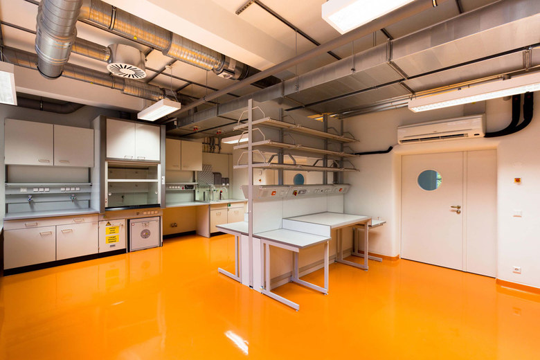 Durch die bestehenden geringen Geschosshöhen galt es, ein spezifisches Erschließungssystem zu generieren, um die lufttechnischen Anforderungen der Tierhaltungs- und Laborbereiche (S2) zu erfüllen. Nun gewährleistet die klare vertikale Struktur - Tierhaltung in den unteren Geschossen, darüber Labore und Verwaltung - einen optimalen Ablauf der translationalen Forschung und Anwendung.