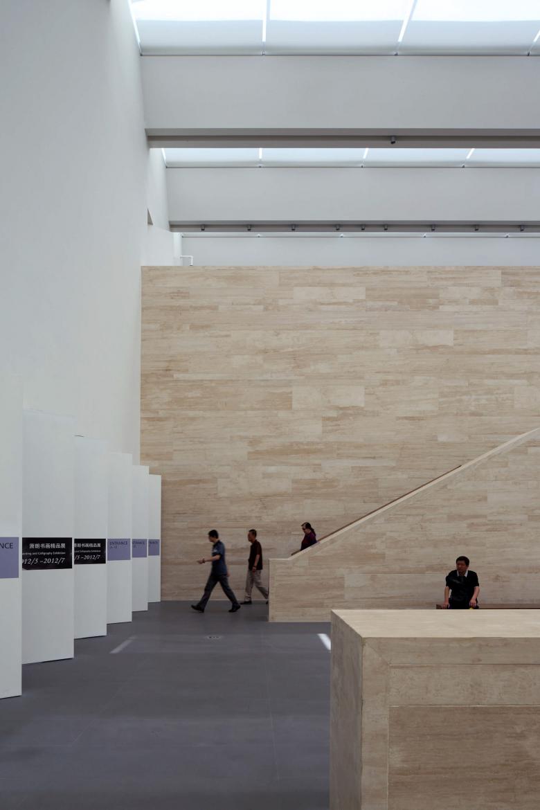 Das Museum erinnert in seinem räumlichen Aufbau an einen monolithischen Steinkubus mit präzisen Einschnitten, Aussparungen und Hohlräumen. Im massiven Teil des Bauwerks sind sämtliche Ausstellungsräume, ein von den Besuchern einsehbarer Raum für Restaurierungen, die Bibliothek und Konferenz- und Besprechungsräume untergebracht. Die kaskadenförmige Abfolge von Treppenaufgängen, die zu den Ausstellungsräumen in den Obergeschossen führen, scheinen aus dem Steinvolumen des Museumsbaus herausgearbeitet zu sein. Dieser Erschließungsbereich wird zusätzlich über Oberlichter belichtet.