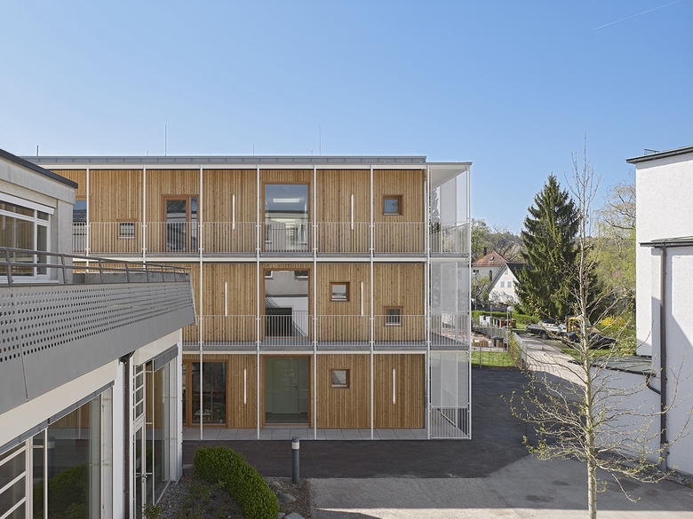 Um die Minimalforderungen an die Programmfläche in dem hochverdichteten Umfeld zu erfüllen, zählt tatsächlich jeder Zentimeter. Im Sinne einer Suffizienz-Strategie heißt das „nicht mehr als nötig“ und bildet die Grundlage für einen gesamthaften nachhaltigen Ansatz. Der Holzbau ermöglicht schlanke Konstruktionen trotz guter Dämmung und spart zusätzlich wertvolle Fläche.