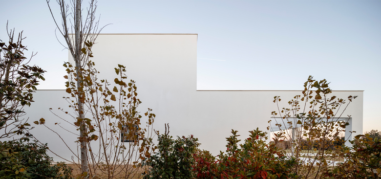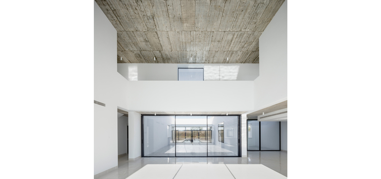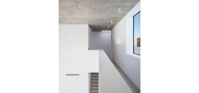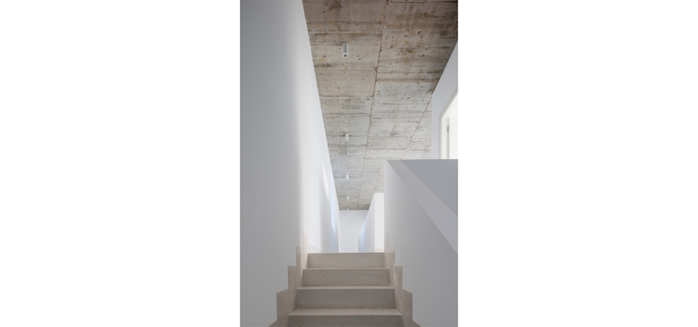 The fare face concrete roofs, framed in between walls and beams, avoid the possible spatial white solipsism. Its wood texture reveals a basic and noble construction, carefully casted.