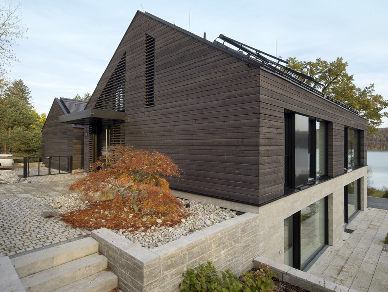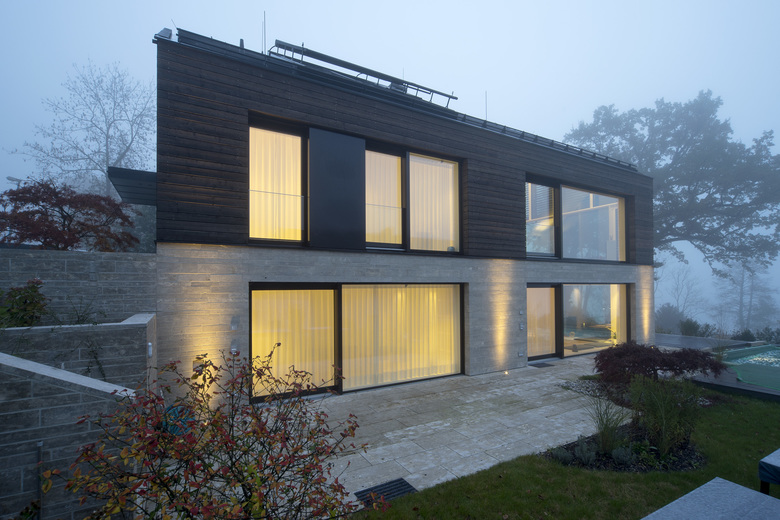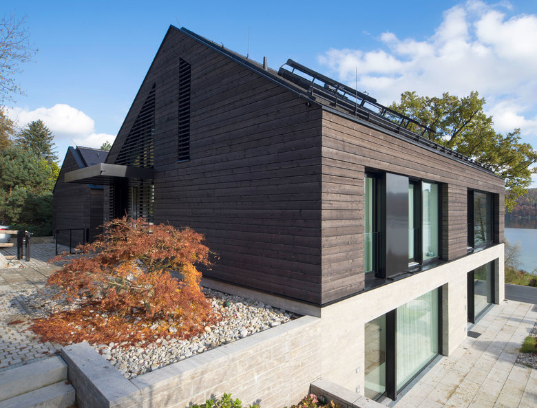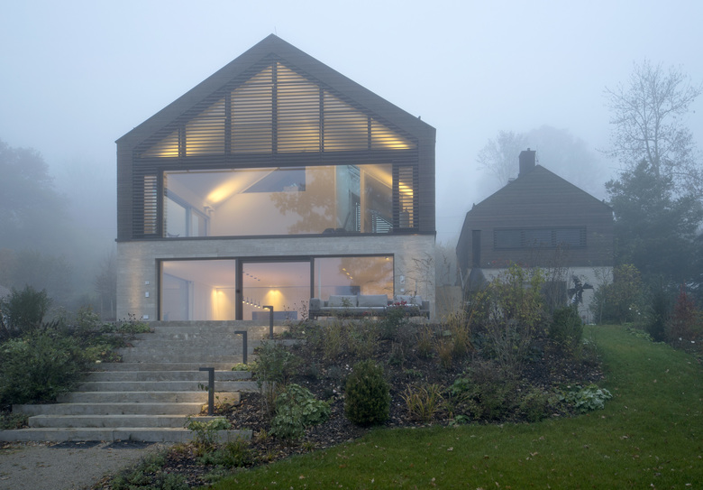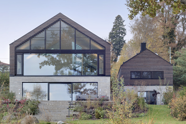 Das Grundstück zeichnet sich durch eine starke Hanglage mit Blick auf den Pilsensee und Kloster Andechs aus. Bedingt durch das Gelände erfolgt der Zugang zum Garten über das erste Untergeschoss, so dass sich das Eingangsgeschoss auf dem Straßenniveau mit einem zweigeschossigen Wohnraum sowie einer Schlafgalerie im Dachraum erstreckt. Die archetypische Bauform nimmt die lokale Formsprache auf, zeitgemäß übersetzt in Materialität und Anforderung an Raumnutzung.
