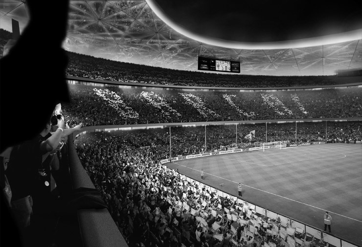Ha servit per dissenyar un aspecte dinàmic al volum que configura l’estadi i també, mitjançant un precís estudi de l’assolejament, ha inspirat el mecanisme rotatori de la coberta, que permetrà controlar en cada moment la quantitat de sol necessària pel correcte creixement de la gespa.