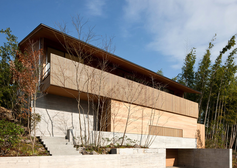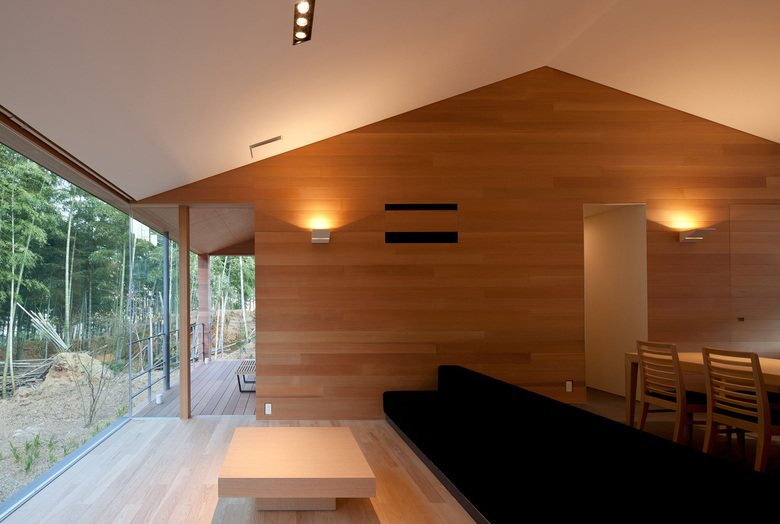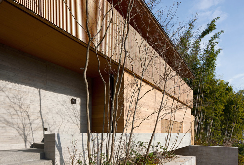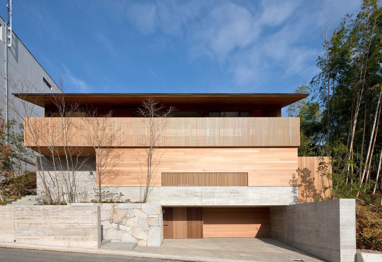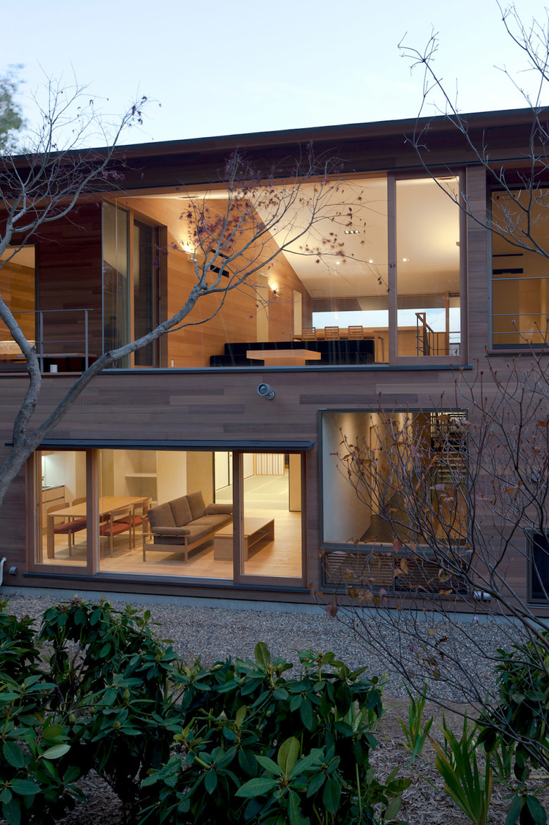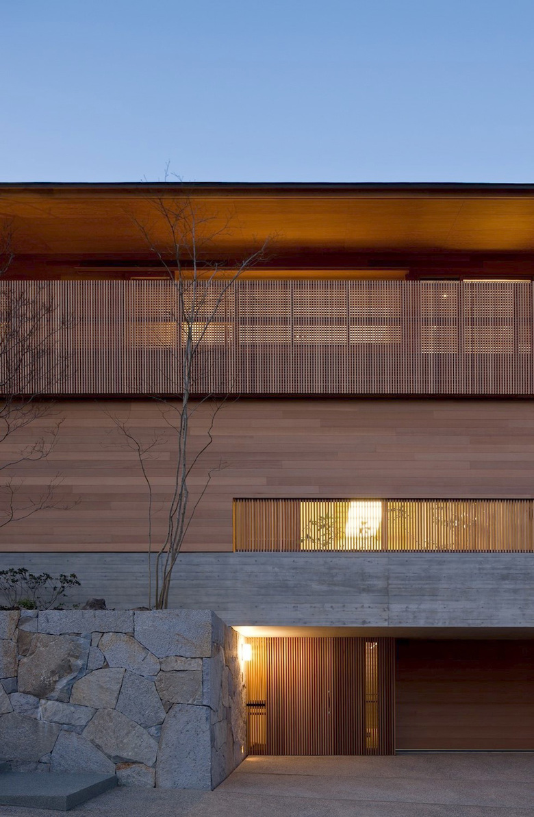 The outward appearance seems matched with taste of the total bumboobush has and natural hollow bury backing, an outer wall, boarding and an expression of perilla are being created. The wooden grid and the RC cryptomeria board exposed concrete are made partial, completion is distributed and a place by the soft light is produced in the interior.