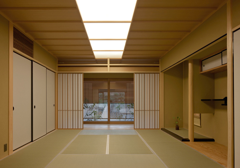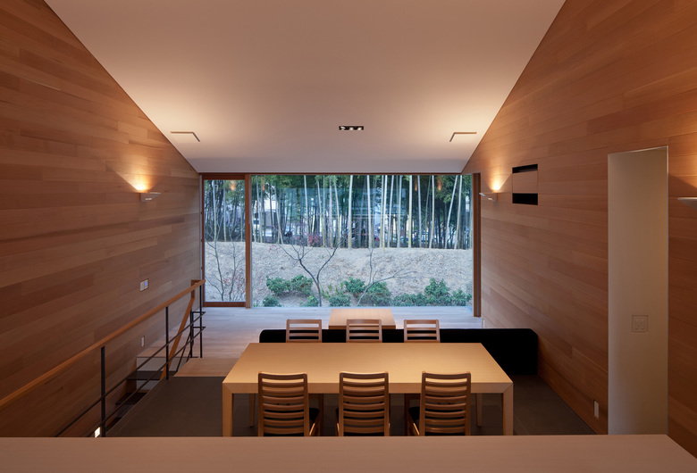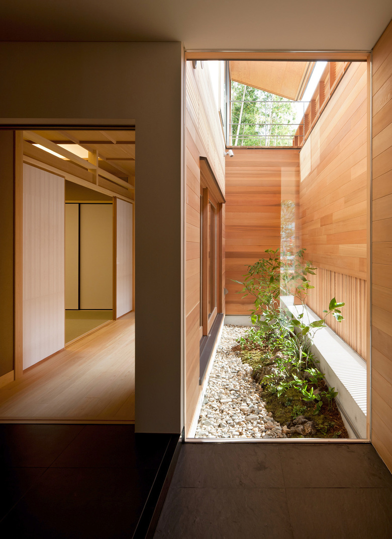 2 households of interior is housing, and the 1st floor is grandparents' resident space mainly. It's continued to a courtyard, a Japanese-style room, LDK and bumboo bush from the south in the center, the Japanese-style room is made the stance of the alcove, aside of the floor and the line with the family Buddhist room and it's made equipment of a study wind.