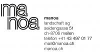 Seit der Gründung 2007 widmet sich manoa landschaft ag in Meilen der Planung, Projektierung und Gestaltung von Aussenräumen und Landschaften und deren Unterhalt und Pflege. Öffentliche und private Freiräume, Siedlungsfreiräume, Gärten, Spiel- und Schulanlagen «bauen wir um den Menschen herum». Seine Bedürfnisse als Nutzer und Bewohner – Wärme, Freundlichkeit, Wohnlichkeit – stehen immer im Zentrum.