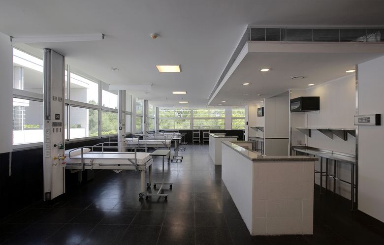 Una investigació intensiva dels avantatges dels sistemes modulars horitzontals ha donat lloc a una sèrie de competicions guardonades per a hospitals d’alta complexitat i aquest enfocament va definir les dues consideracions bàsiques que van impulsar el disseny del nou hospital d’emergència de Rosario: flexibilitat en la seva capacitat de adaptació a les noves tecnologies mèdiques i a la provisió d’espais eficients i còmodes per als pacients, el personal i les famílies en una situació que, per definició, és molt estressant. Organitzat en una sèrie de dos pisos en forma de volums en barra que defineixen les zones d’ús i les seves jerarquies, les àrees públiques es troben al pavelló / espai que corre al llarg del carrer i les oficines de personal i l’àrea de serveis es troben a la zona posterior. Al mig, tres pavellons perpendiculars separats per dos patis interiors que proporcionen llum natural i ventilació, contenen les àrees de tractaments, diferenciades en planta i secció en els dos pisos segons la seva funció i el nivell de tractament del pacient.