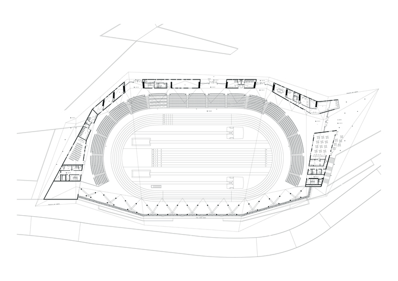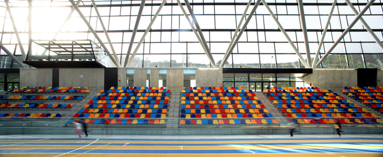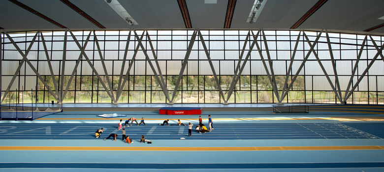L'estructura projectada consisteix en una gran coberta que sembla desplegar-seguint el moviment topogràfic de l'eix transversal i longitudinal del solar. Es tracta d'un element continu, lleuger i gairebé immaterial que sura sobre l'espai interior. Una de les consideracions més importants en el desenvolupament del disseny del projecte va ser la de conferir certa autonomia a la coberta perquè la forma de la mateixa no hagués de ser idèntica a la de la pista.