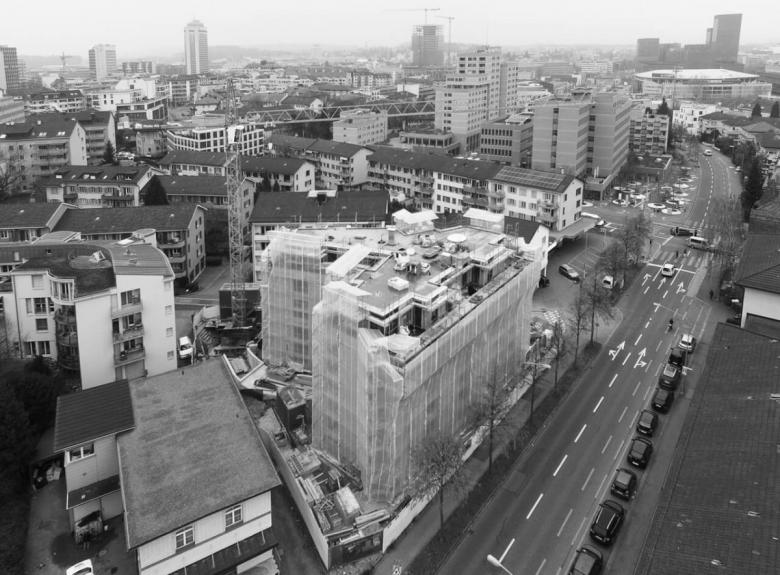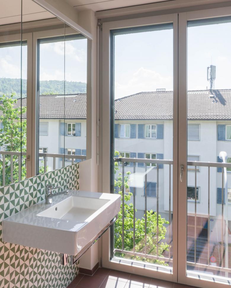 Auf dem Sattelpunkt zwischen Zürich- und Käferberg treffen die städtischen Strukturen Zürichs auf die gartenstädtischen Siedlungen von Oerlikon. Hier, an der Gabelung der leisen Allenmoos- und der lärmigen Dörflistrasse, liegt das spitzwinklige Grundstück der Wohnüberbauung Allenmoos. Mit einem feingliedrigen, zweischenkligen Gebäude konnte 2014 der selektive Wettbewerb gewonnen und die 19 Wohnungen 2018 bezogen werden.