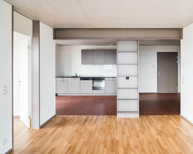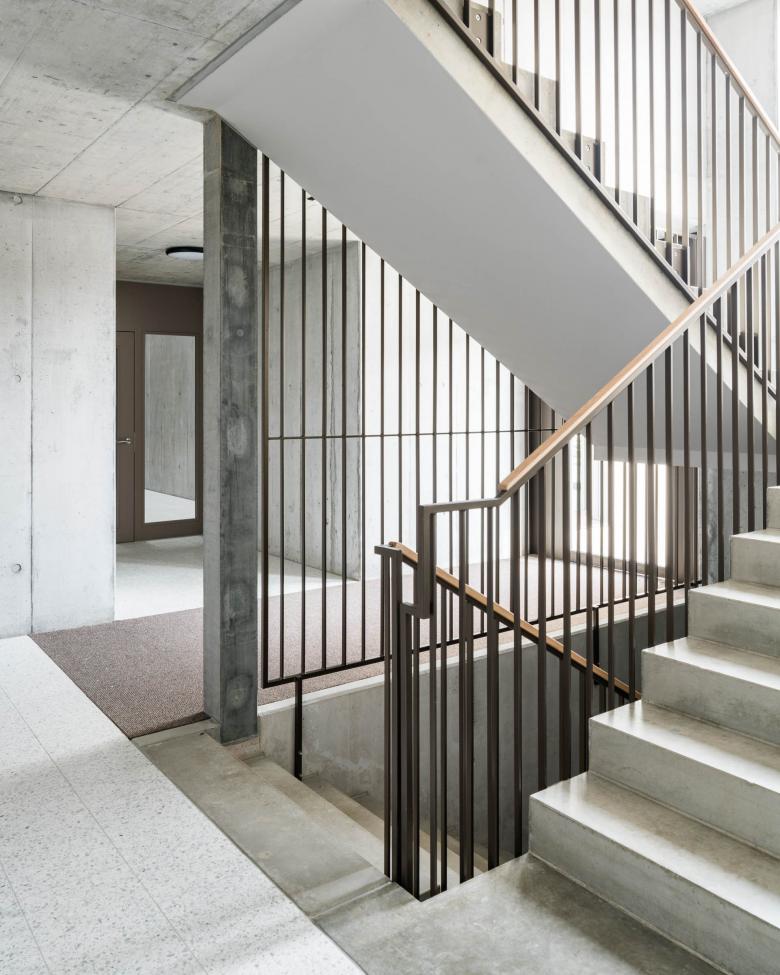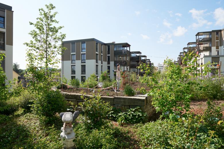 Der längliche Perimeter liegt zwischen zwei Quartierstrassen, die der Topografie folgend eine taillierte Grunddisposition schaffen. Die ehemalige Gartenstadt reagierte darauf mit einer Zeilenbauweise und zwang die Bewohner in ein räumliches Korsett aus Garten- und Strassenraum. Repetitive Grundrisse für Kleinfamilien führten zu einer geringen sozialen Durchmischung. Mit dem Neubau entstand eine Siedlungsform, die das architektonische Erbe zeitgemäss übersetzt. Sechs ortsspezifische, durch ihren Ausdruck trotzdem einheitliche, Volumen bilden den Rahmen für den neu öffentlich zugänglichen Gartenhof. Subtil ausformulierte Kopfenden an den peripheren Gebäuden und Baumgruppen fassen den Hof optisch, ohne seine Durchlässigkeit zu beeinträchtigen. Als Schnittstelle zwischen Aussen- und Innenraum schieben sich die Küchen mit angrenzendem Balkon als Erker in den Hof. Diese Geste gliedert und rhythmisiert den Hofraum mit Balkontürmen und schafft einen Bezug zwischen den Nachbarn in respektvoller Distanz. Mit dem Einfassen der obersten Geschosse wird die Verdichtung gestalterisch überschrieben und in das Mass der umliegenden Fassaden eingewoben. Im Fernblick, nicht zuletzt vom See, verschwimmen die neuen Dachkronen im Meer der sie umgebenden, braunen Giebeldächer.