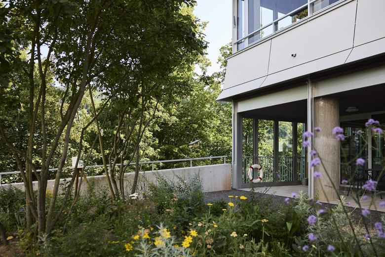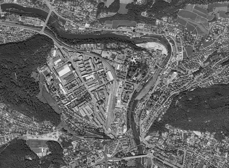 Die heissen Quellen am Limmatknie gaben Baden seinen Namen. Aus dem Ortskern führt die nach den Erbauern benannte Römerstrasse ins Industriegebiet. Hier wurde 1891 die Brown, Boveri & Cie – die heutige ABB – gegründet. Eine Villa der Gründer und das weitläufige Industrieareal zeugen vom einstigen Glanz des Standortes. Etwas peripher, am bewaldeten Steilhang zur Limmat hin, stehen vier pavillonartige Erweiterungsbauten aus den 60er Jahren. Dank eines erfolgreichen Wettbewerbes 2010 konnte die filigrane Bürostruktur in 78 Eigentumswohnungen umgebaut und 2023 bezogen werden.