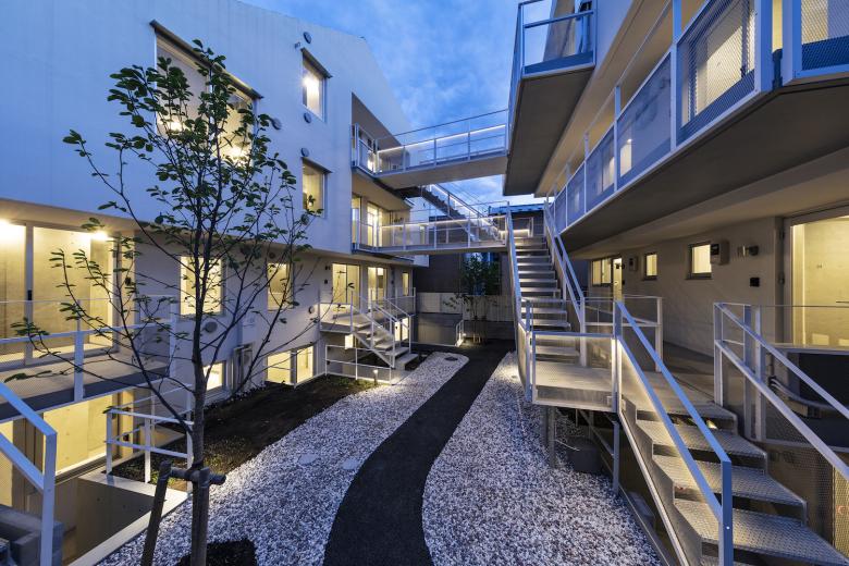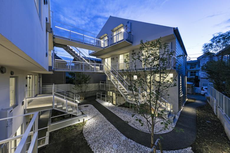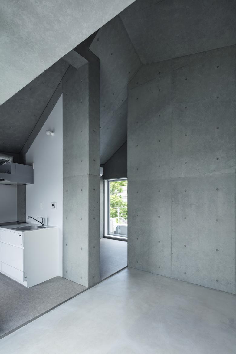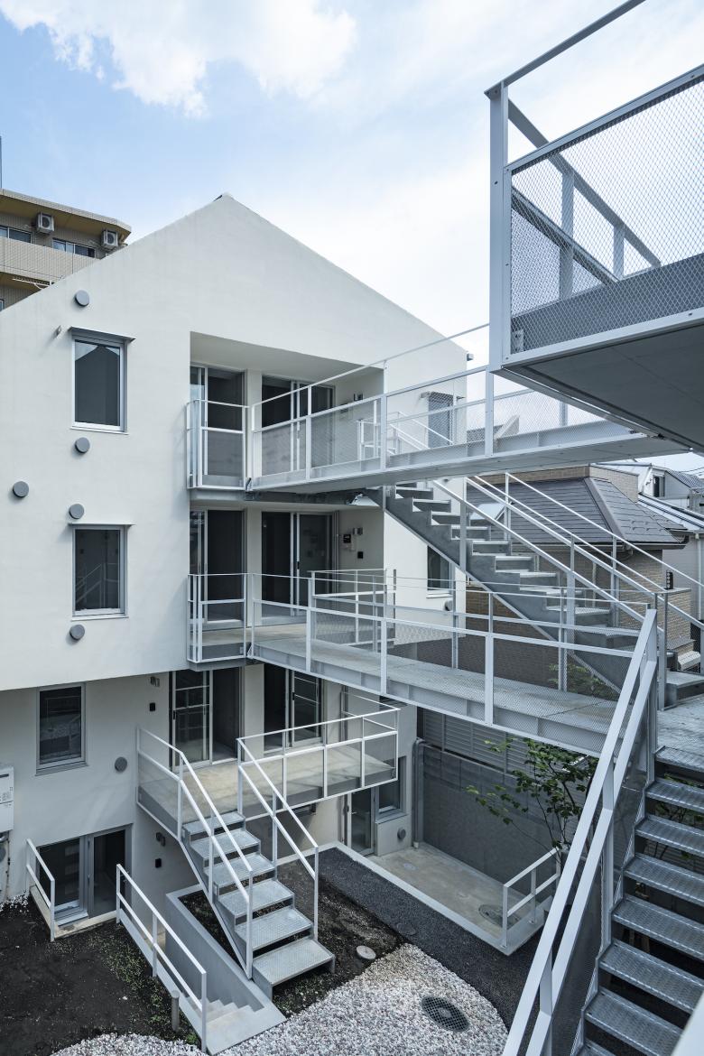 東京郊外の閑静な住宅地に建つ22戸のいわゆるワンルーム住戸で構成される賃貸用集合住宅の計画。