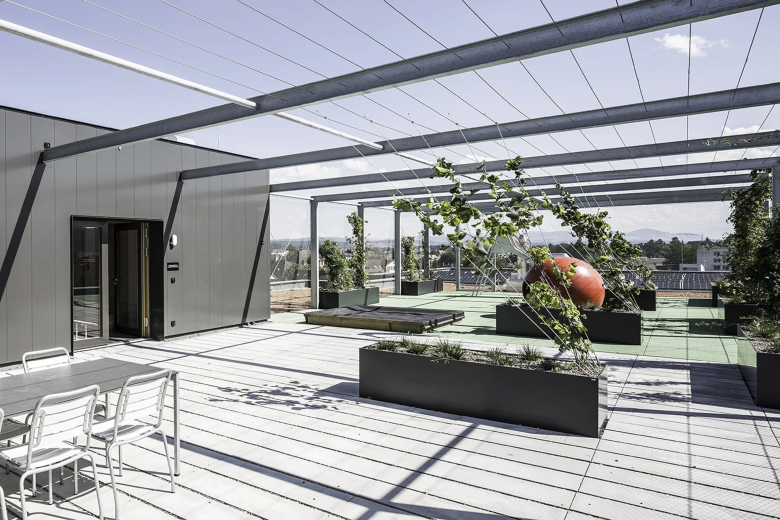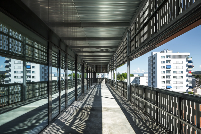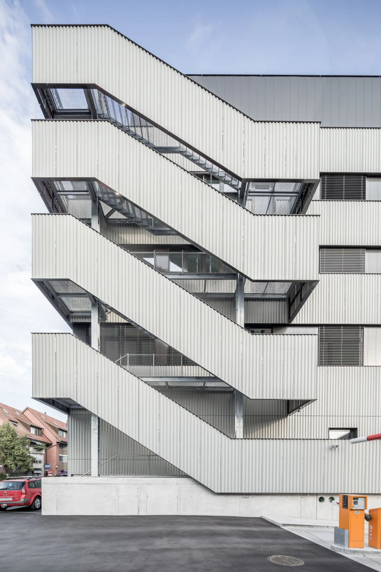 Das in der Stadtmitte von Dübendorf gelegene City Center aus den 70er-Jahren wurde saniert und um ein Voll- sowie ein Dachgeschoss aufgewertet. Die zurückversetzte Aufstockung über die gesamte Gebäudelänge ergibt eine qualitätvolle kubische Gliederung, welche durch die Fassadengestaltung und die umlaufenden Brüstungsbänder verstärkt wird: heller, gewellter Faserzement im Wechsel mit dunkler hervorgehobenen Holz-Metall-Fenstern. Auf dem Dach bietet ein 250 m2 grosses «grünes Zimmer» Aussenraum für die Eigentümerschaft.