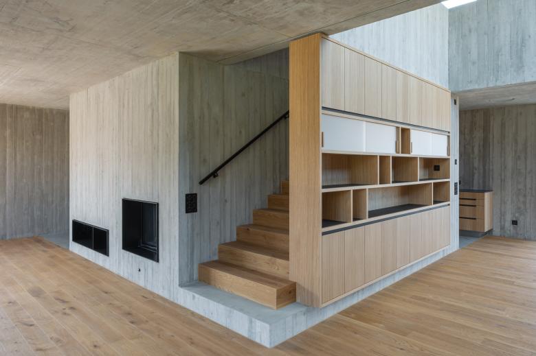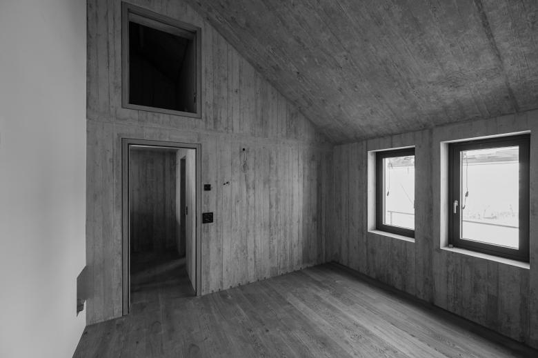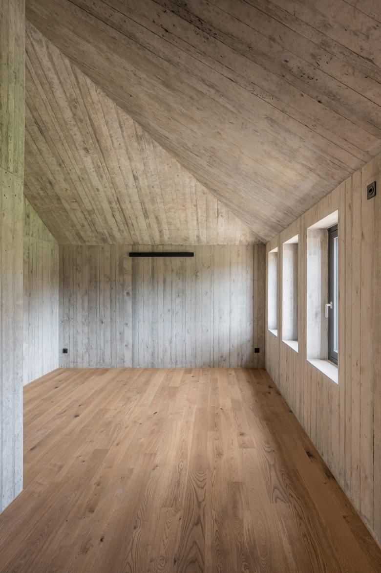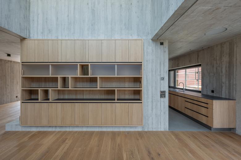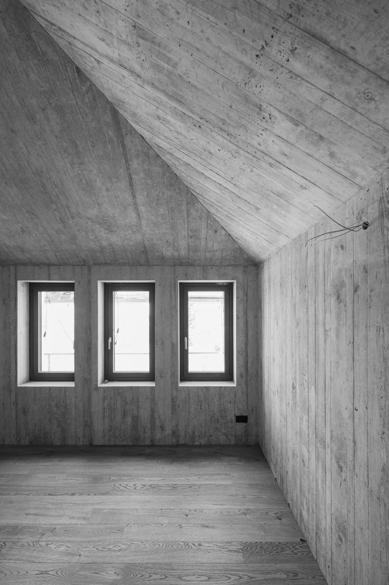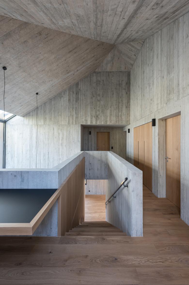 Die quadratische Grundrissform der Gebäude bietet eine optimale Anordnung der Räume im Inneren, deren Herleitung aus einem Wohnkern entwickelt ist. Beide Häuser sind dreigeschossig und bieten ausreichend Platz für jeweils eine Familie.