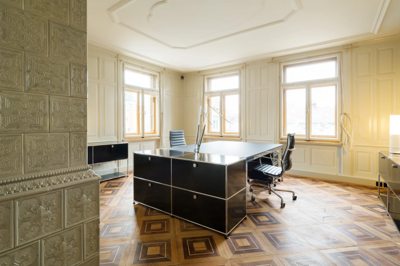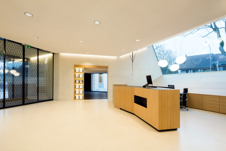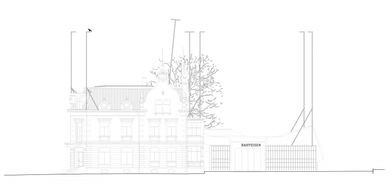 Dank des Neubaus konnte die denkmalgeschützte Villa erhalten und originalgetreu restauriert werden. In den ursprünglichen Wohnräumen befinden sich nun Büros. Das Kunst-am-Bau-Projekt des Künstlers Yves Netzhammer zeigt mit Bau-Visierstangen ein imaginäres, eigenständiges Volumen über der bestehenden Villa und der neu erbauten Filiale der Raiffeisenbank Untersee Rhein. Dadurch werden Gedankenräume aktiviert, neue Beziehungen geschaffen und die Konstruktion des Momentanen hinterfragt.