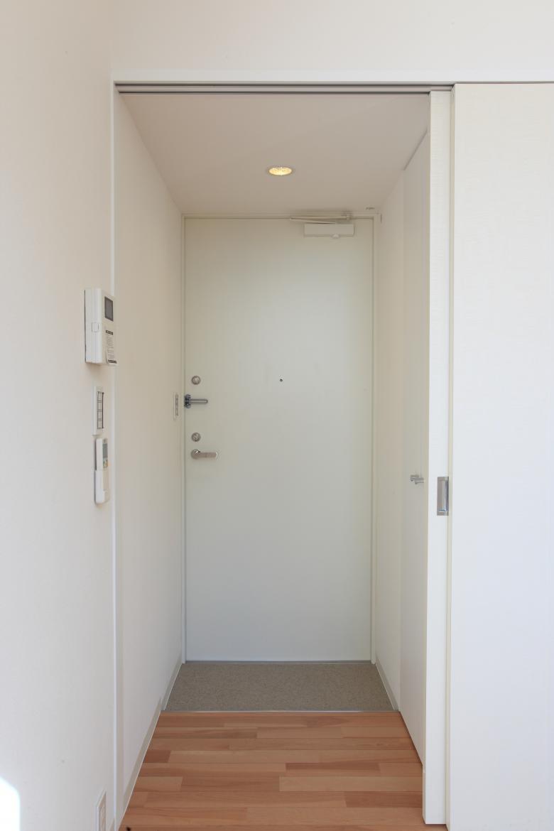 The ground-floor dwellings comprise two units where the wet areas are grouped on one side and the living spaces are kept as simple rectangular spaces as possible, and one unit that extends lengthwise from north to south. The south-facing opening overlooks a garden planted with bright-leaved groundcover that blooms with charming blue flowers in early spring.