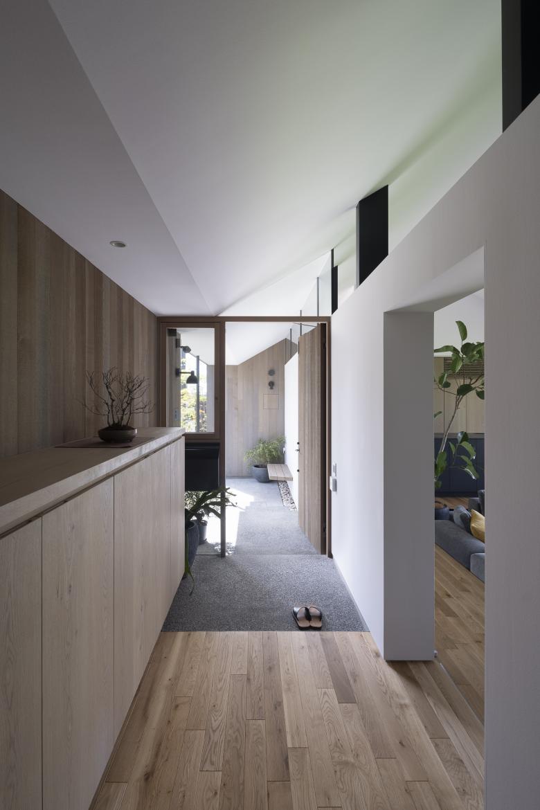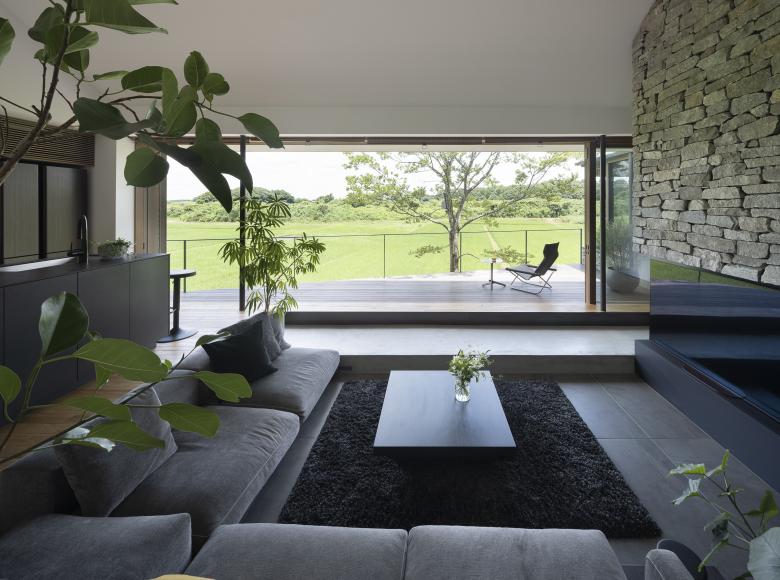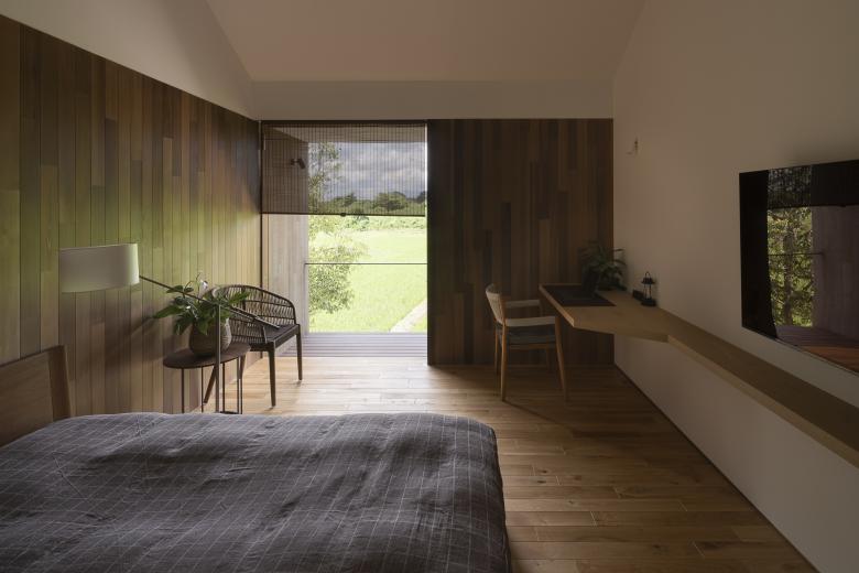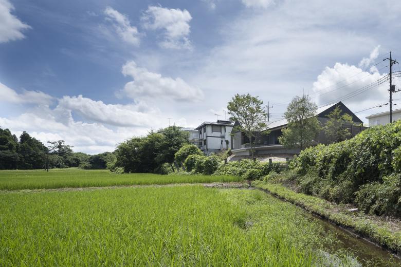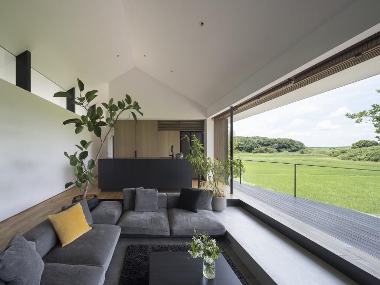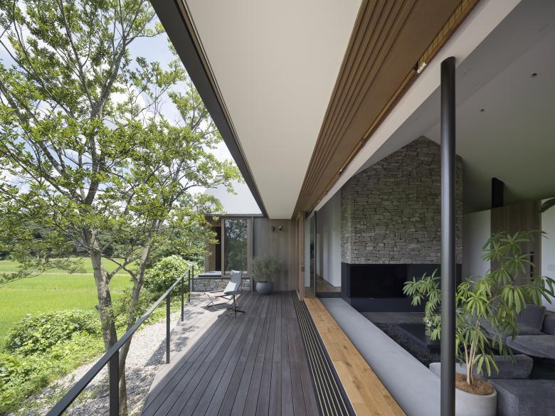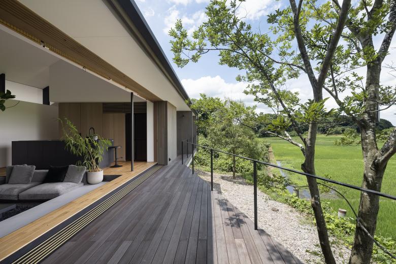 The house has a simple and beautiful appearance that blends in with the surrounding nature and becomes part of the landscape. The simplicity of the house, on the other hand, also has the strength to serve as a backdrop that enhances the garden (second nature) created by the resident (landscape architect). The living space and balcony are lifted off the ground and opened up so that the viewer can enjoy the changing nature by focusing on the rice paddies and forests in the distance. This is due in large part to the fact that the site shape, which would have required a retaining wall, was reversed and a retaining wall was not built, but rather the plan and cross-sectional plan were used to create a spring-loaded shape. The refined design, while incorporating natural materials, and the ingenuity to neatly and easily accommodate details, have resulted in a space that is both generous and quiet, with nature taking center stage in each of the four seasons.