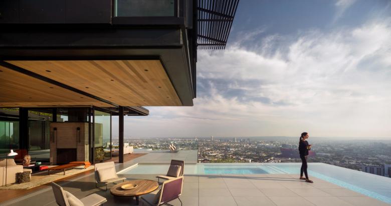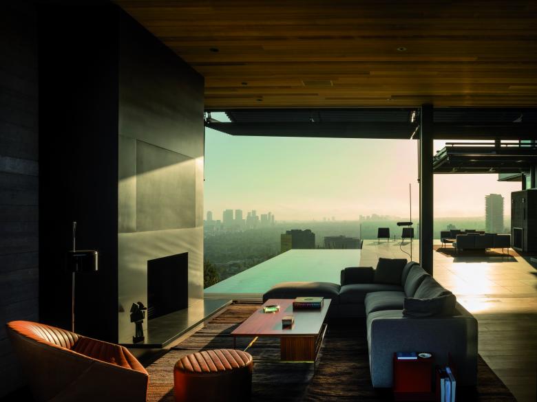 This high-tech West Hollywood retreat is located just above the Sunset Strip and overlooks Los Angeles with sweeping views that stretch from the San Gabriel Mountains to the Pacific Ocean. Maximizing access to these breathtaking views from all parts of the home was a key design directive. Other design goals were to blur the boundaries between inside and outside as much as possible – because the client comes from a background of outdoor adventures, he wanted the house to feel like an adventure to him and his many guests. Many custom-designed and automated elements throughout all three levels contribute to the home’s uniquely modern identity.