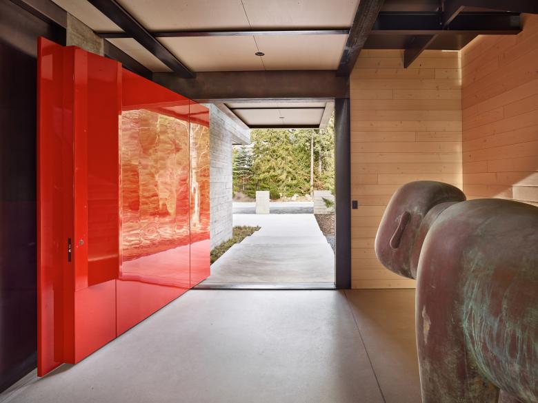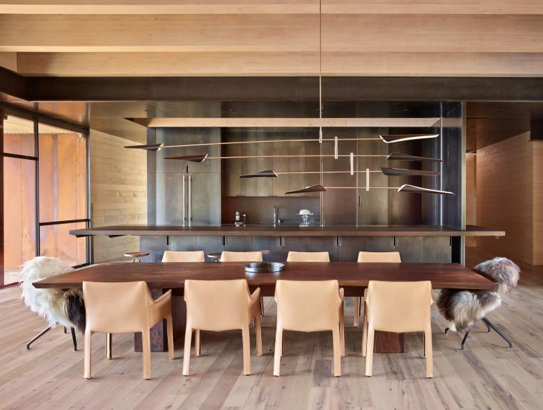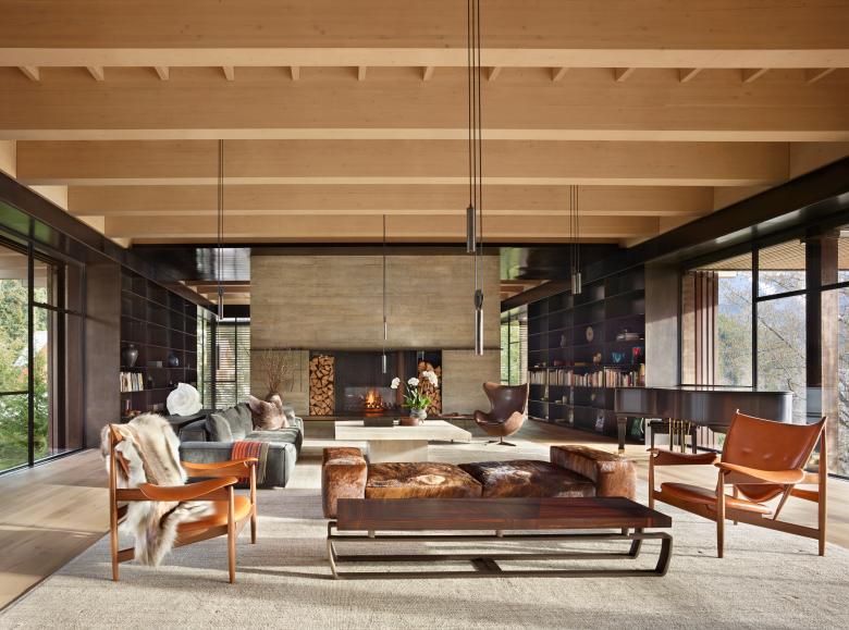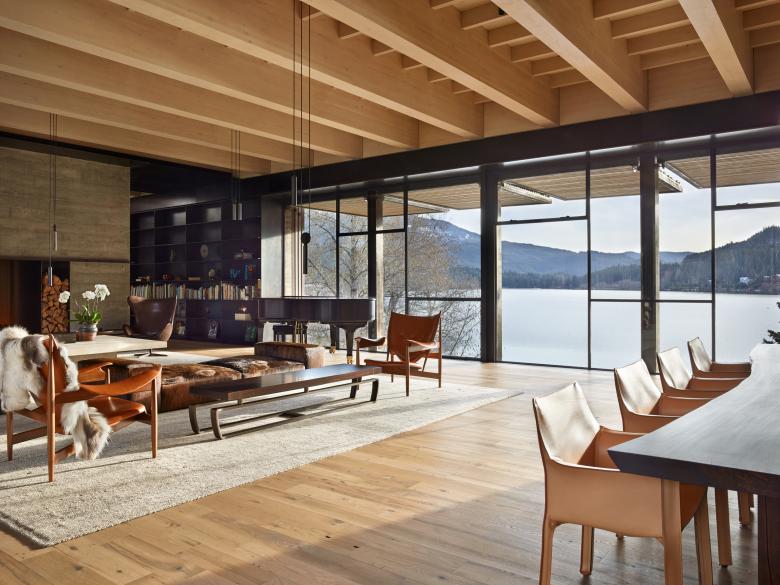 “Our main goal with this family retreat was to create a design that would allow it to withstand its harsh mountain climate, as well as its location in a high seismic risk zone. This is a mountain home that’s almost completely wrapped in operable devices to protect it from weather conditions. The steel and wood shutter system allows the glazing to be fully exposed, or totally buttoned up, or somewhere in between.” –Tom Kundig, FAIA, RIBA, Design Principal