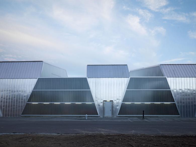 Zur Längsaussteifung sind die inneren und äusseren Stützen V-förmig angeordnet. Sie bilden sich als gestaltergebendes Grundmotiv in Struktur und Rhythmus der Fassade ab und prägen damit die Gesamterscheinung des Gebäudes. Die statische Höhe der Querträger resultiert aus den stützenfreien Erweiterungsmöglichkeiten der Halle. Für die Ausbauetappen können die bestehenden Fassaden demontiert und die Fachwerkträger verlängert werden.