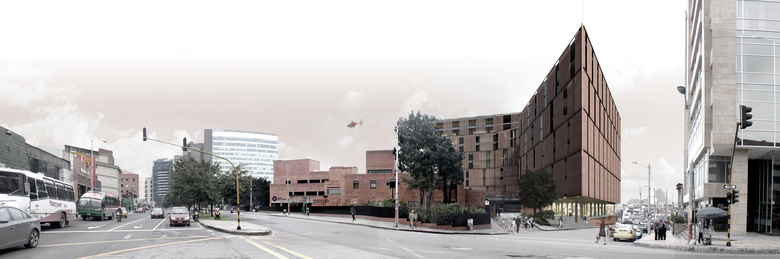 La proposta per a l'ampliació de l'hospital Santa Fe de Bogotà respon a una doble preocupació: la coherència amb els voltants urbans i la dinamització de les preexistències del recinte hospitalari. Ambdues consideracions convergeixen en un projecte que es resol des de l'accessibilitat de l'exterior i les circulacions interiors. La proposta s'ha plantejat des de la sobrietat, l'elegància i la imatge de solidesa de la Institució, però al seu torn de projecció al futur. La utilització de la ceràmica en la façana de manera innovadora manifesta respecte al material tradicional de Bogotà i a les edificacions preexistents del recinte, alhora que ofereix una lectura innovadora. Els espais d'aproximació i de recepció doten al conjunt d'una nova imatge corporativa.